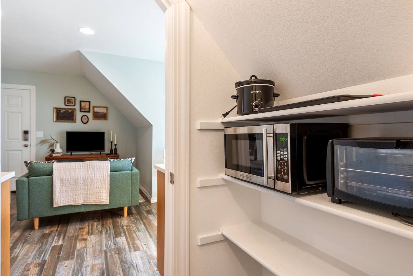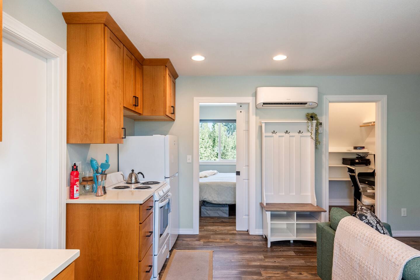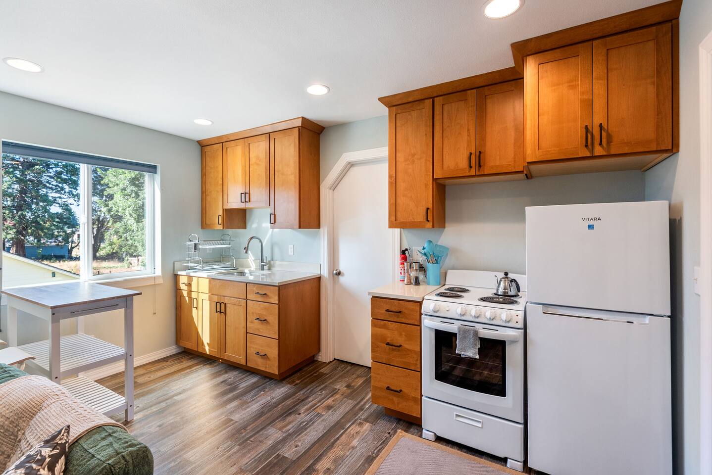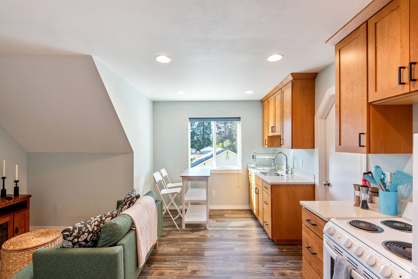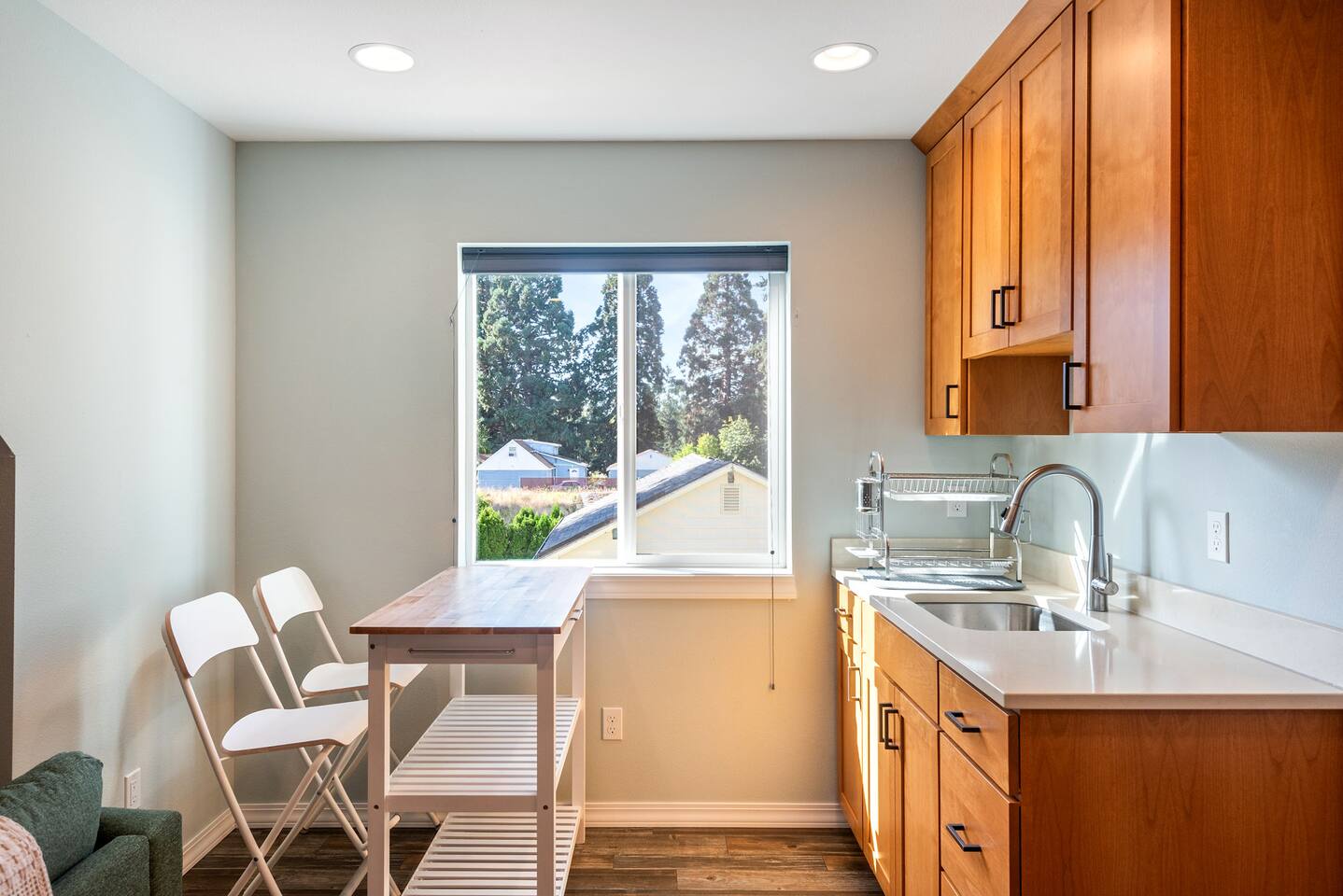 Cute and cozy this granny flat located above the shop of our 1880s classic farmhouse is located in a quiet family neighborhood in Hillsboro is a quick trot to Hillsboro Med Center, the downtown Hillsboro Core and features all the comforts of home you need! With a full kitchen, bath and separate office you’ll love our farmhouse chic space as a quiet escape from the hustle and bustle of life.