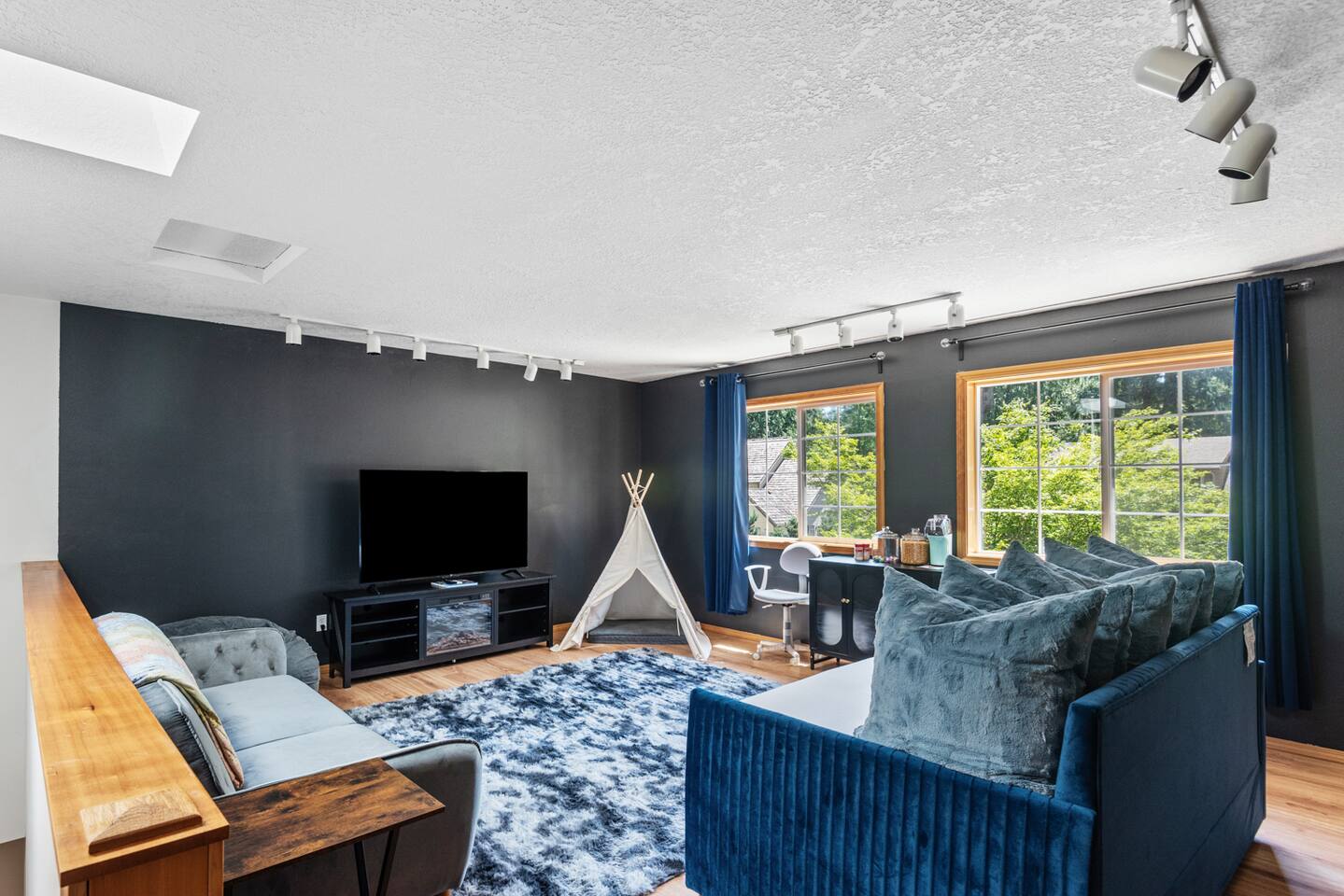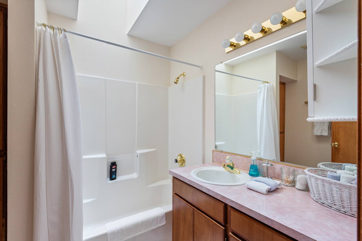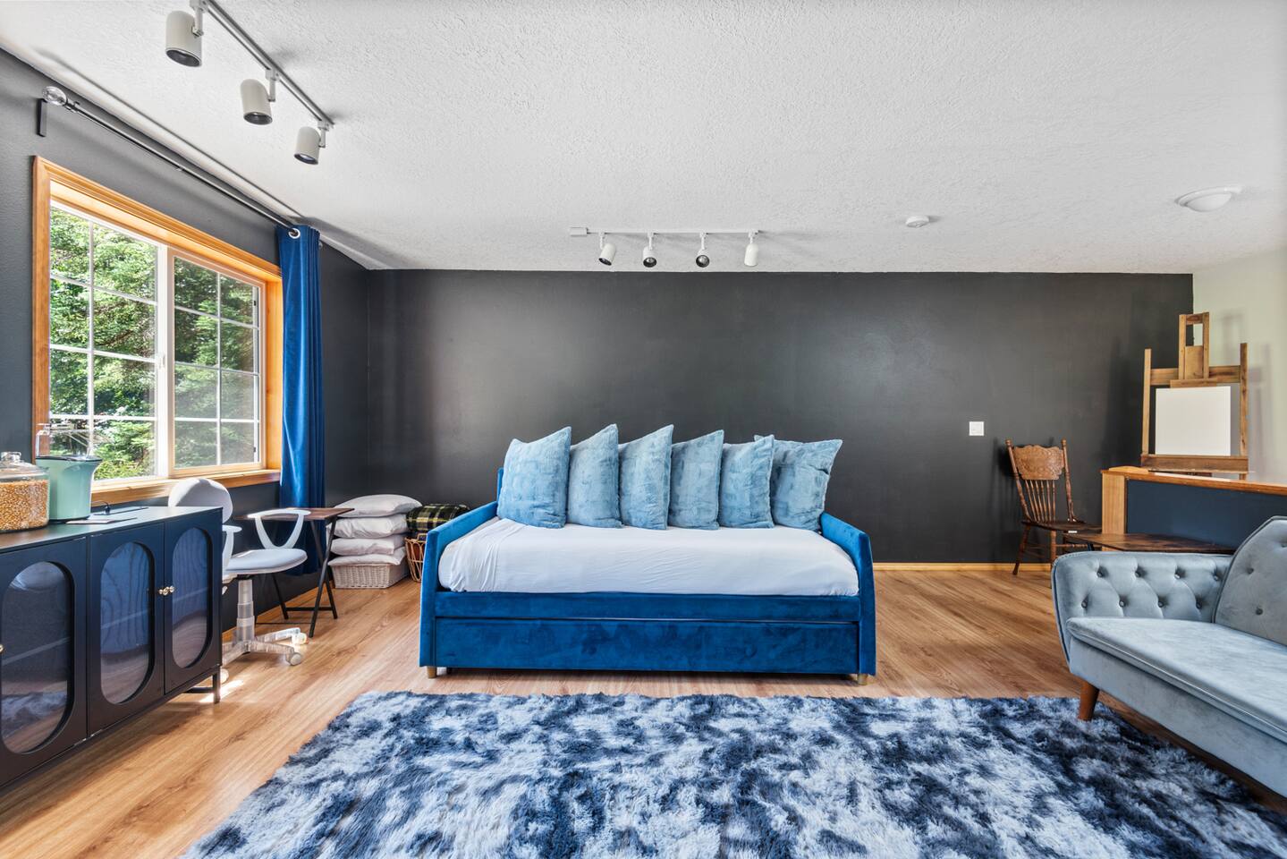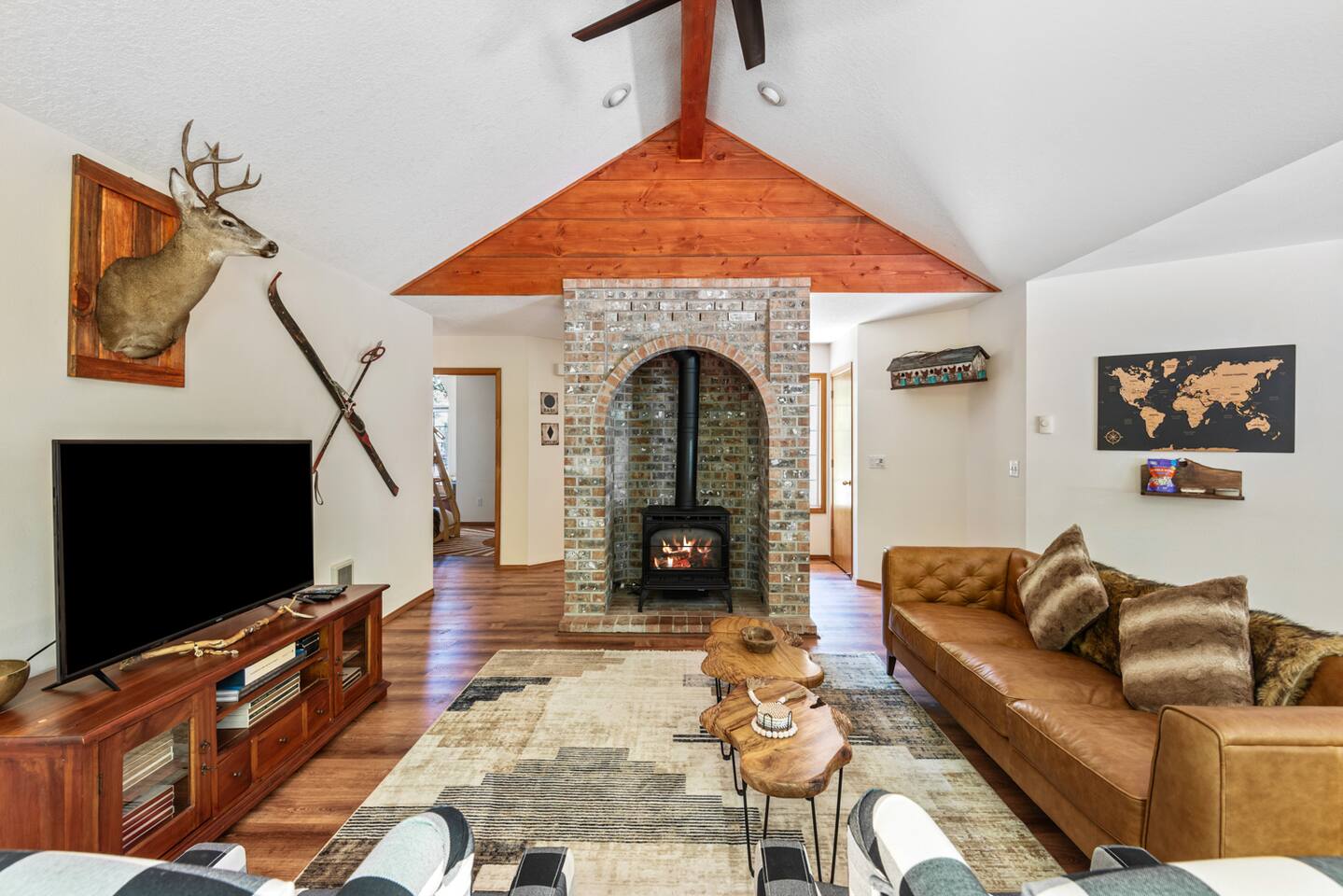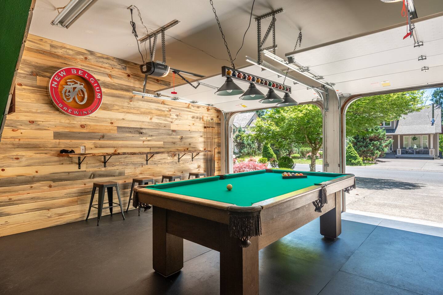 *3 Bedroom *2 Full Bathrooms - one family one ensuite *Move theater room with 65 inch TV, Popcorn Machine, day bed, trundle, futon sofa, and rollaway bed *Hot Tub *RV/ Boat Parking $40 extra per week (min $40/ stay) *Garage Converted to Game room and private bar! *Fenced back yard *Kid Friendly Features: Kids bunk room with toys and art materials, pack n play, high chair, baby/toddler utensils *AC (upstairs so there's a place to escape the heat on hot days! Ground Floor also has box fans in each room!) *Kitchen WELL EQUIPPED: French press Coffe mugs Plates bowls glasses roasting pans cookie sheets Mixing bowls kitchen aid mixer electric griddle full oven dishwasher large refrigerator ample wine glasses and bar-ware loads of pots and pans full spice rack olive oil salt and pepper Glass Tupperware Crockpot Dish Soap and sponges/scrubbers Paper Towels, seran wrap, foil Dishwasher pods Laundry room: full sized washer dryer top load side by side Large laundry sink Extra flashlights and lanterns are stored here Brooms Iron + Ironing board (located to side of WD) Bathrooms: Shampoo and conditioner Hand soap Washcloths Multiple towels (we're not stingy with them!) Toilet Paper Extra Toothbrushes- because someone always forgets one! Bedrooms: Each Room should be equipped with an extra set of linens and pillows just in case! Luggage racks Hangers Closets with storage and shelves TWO king Bedrooms one with ensuite one without Bunk room with twin and queen bunk, play kitchen, kids toys, games and built in desk/workstation Box Fans for air circulation/ white noise during warm months Living Area: Large leather couch Two reclining chairs Fireplace Smart TV Smart Fan Sliding doors that open to deck Open concept to kitchen/ dining room Game Room Bar: Pool table Dart board Bar with Bar Stools Shuffleboard Boot and Board Rack for Snowboards/skis Outside: Fenced yard Deck wrap around bench on deck Outdoor furniture Gas Grill HOT TUB Parking: Driveway has parking for 3 cars sided by side, there is a space for RVs boats or you could park some cars back to front and likely fit a total of 5 cars in the driveway. We prefer guests to avoid street parking