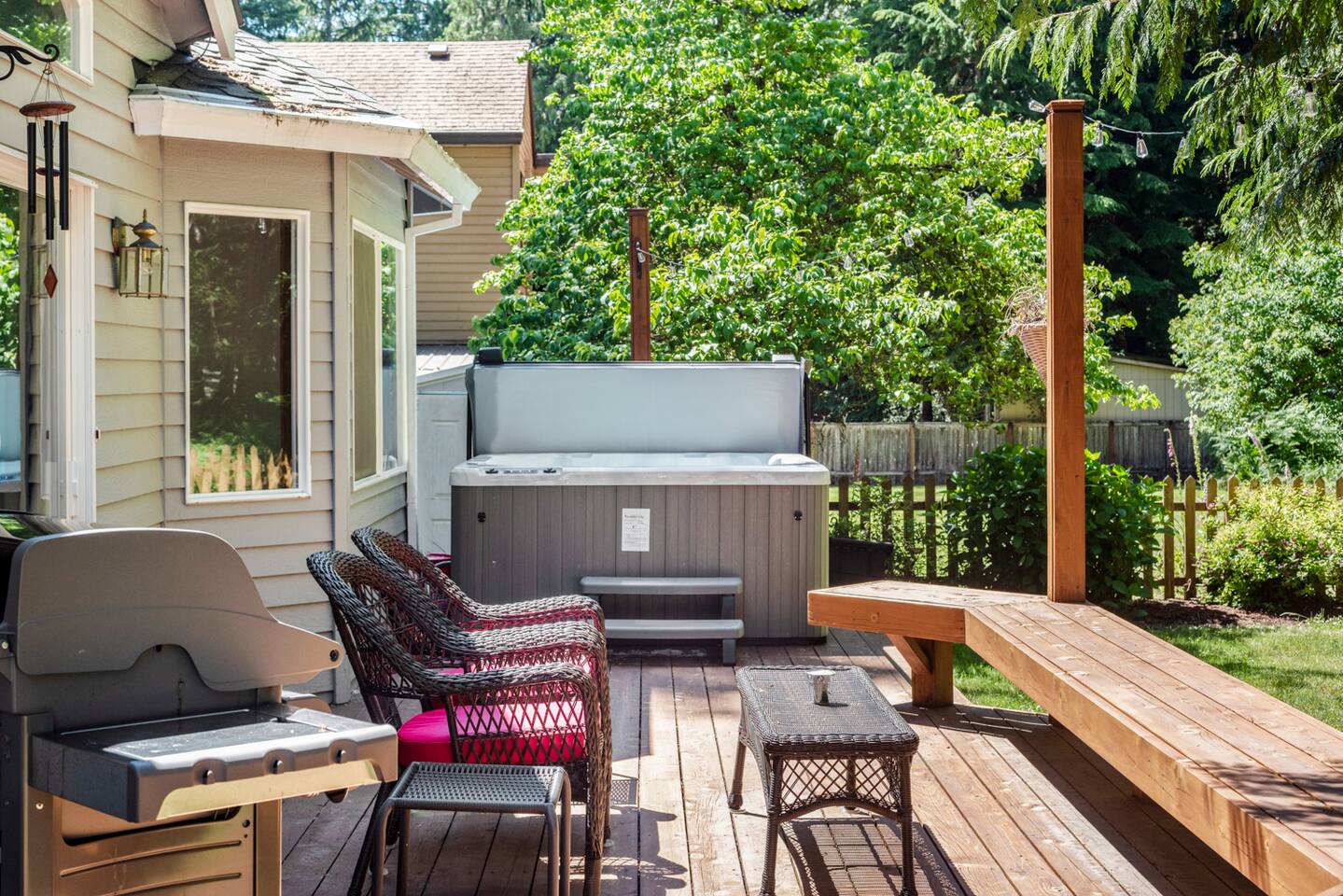 AC unit is upstairs. It's a mini split so there is AC but it is not throughout the house. It does keep upstairs VERY cool so there's and escape from the heat in summer The backyard is private in that it’s not shared with any other neighbors and is completely fenced but the fences are 4ft and you can see into the neighbors yards. Extra rollaway bed and linens for trundle are in upstairs closet Hot tub has extra chemicals and filters in red bucket next to it if in the off chance it's not pristine on arrival so you don't have to miss out on hot tubbing Vacuum is in closet to right of bottom of stairs Wifi is Starlink Master bathtub is same size as water heater, so if you plan to take a bath note that it can take 2+ hrs for the tank to refill and reheat. We have extras of almost anything and are happy to help you find them in the house just reach out and ask!