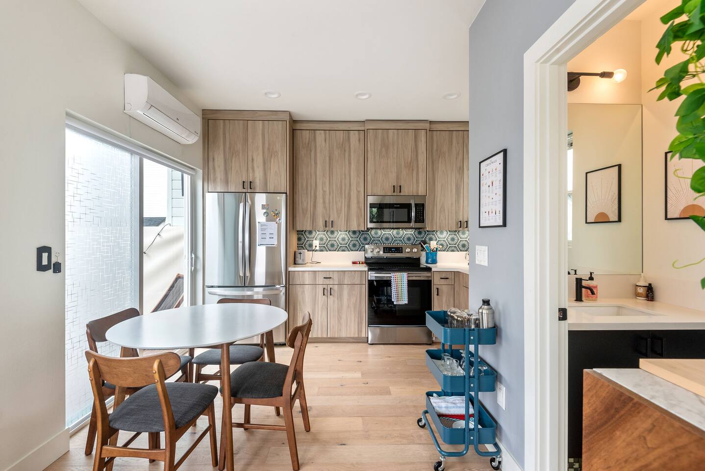 Reach out directly for special discount offers! Enjoy a stylish experience at this centrally-located 2 bed 1.5 bath modern townhouse in walkable Alberta Arts. Stones throw to popular restaurants, shops, bars, and parks you'll love all the modern amenities this home from home offers. Featuring a fully enclosed yard, AC, Washer Dryer in Unit, and extra fold out couch for overflow guests this is the perfect getaway in the heart of the cities inner east side!