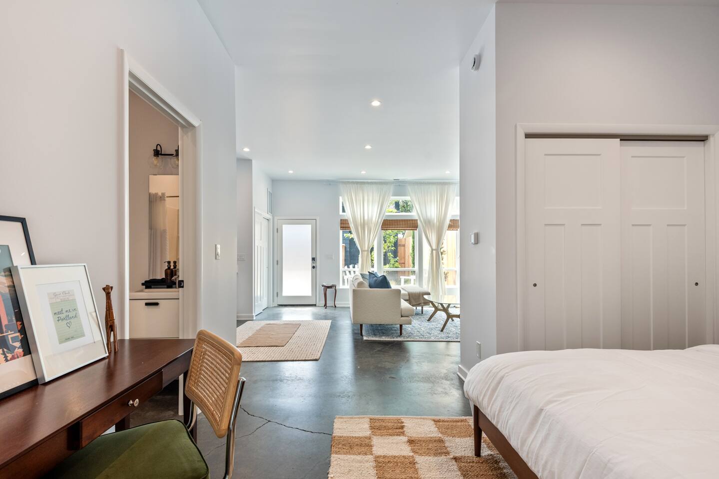 MESSAGE ME FOR SPECIAL RATES AND DISCOUNTS! Escape to a stylish loft style ground floor apartment with fully fenced yard. Tucked away off vibrant Division St. This urban oasis offers a perfect blend of tranquility and convenience walking distance to loads of restaurants, bars and cafes. With free street parking, a fully fenced yard, king sized bed, high speed wifi in unit laundry, AC and smart TV you'll love this bright and airy home from home in a safe neighborhood.